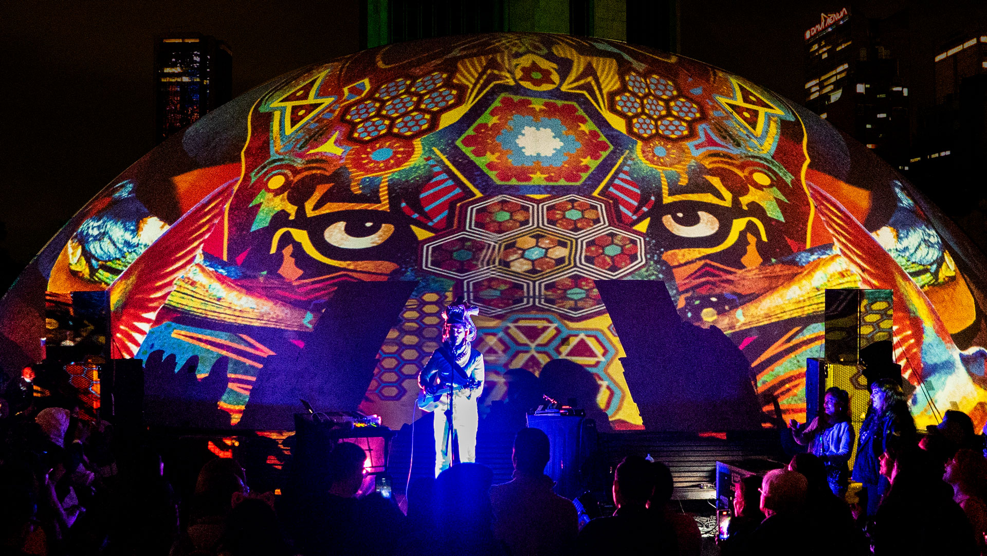 Vivimos un mes lleno de magia, arte, música, nuevos amigos y jaguaridad, recorriendo nuestro país con arte digital, proyecciones de gran formato, música y experiencias de conexión con nuestra identidad ancestral, nuestro origen y nuestra historia más profunda.